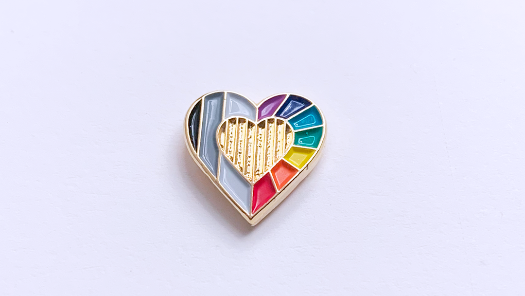 The pin is a reminder that you are alive. Wearing the pin celebrates the song of life, the love from and of your surroundings, and the richness of each day of your life. When you get up in the morning or catch a glimpse of the pin in the mirror, remember you are alive and living in the rainbow of life, with the song of the world around you.